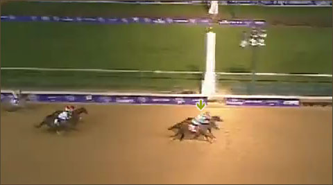 Így is úgy nézett ki, hogy az utolsó száz yardon átfut a vezetőn, a szpíker csak az ő nevét kiáltozta, ám a védekező Blame kifelé húzott, épp csak annyira, hogy megzavarja, de még ne diszkvalifikálják, így Zenyatta a létező legkisebb különbséggel, orrhosszal kikapott élete utolsó versenyén. Ezzel Overdose-hoz hasonlóan mindörökre lekerült a veretlen lovak listájáról. Még szerencse, hogy létezik másik, egy hasonlóan értékes lista, a veretlenségi sorozat, s abban mindketten ott vannak így is az első húszban.